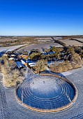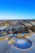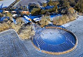 Black Chalk winery and Circle vineyard in the snow. Cottonworth, near Andover, H...