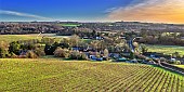 Vineyard of New Hall below All Saints Church. Purleigh, Essex, UK.