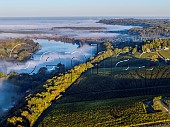 Early morning fog over vineyards at Langoiran. Gironde, France. [Cadillac / Côt...