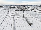 Black Chalk winery and Circle vineyard in the snow. Cottonworth, near Andover, H...