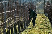 Gwilym Cooper pruning Pinot Meunier vines in Hide vineyard of Black Chalk. Fulle...