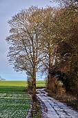 Snowy farm track at Fullerton. Near Andover, Hampshire, England.
