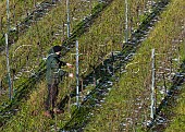Pruning Pinot Meunier vine in Hide vineyard of Black Chalk. Fullerton, Hampshire...