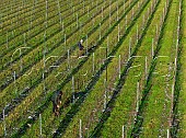 Chardonnay vines in Hide Vineyard of Black Chalk. Fullerton, Hampshire, England.