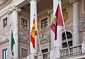 Flags on the City Hall of Cádiz. Andalucia, Spain.
