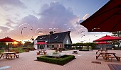 Sunrise over courtyard of Inniskillin Winery. Niagara-on-the-Lake, Ontario provi...