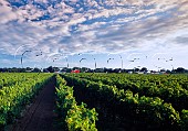 Pelee Island vineyard at sunrise. Lake Erie, Ontario, Canada. [Lake Erie North ...