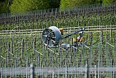 'Tow and Blow' fan heater to combat spring frost in Exton Park vineyard. Exton, ...