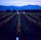 Night time harvesting of Chardonnay. Trefethen vineyards, Napa, California.