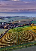 Autumn colours of Rowles Farm Vineyards at sunrise. West Ilsley, Berkshire, Engl...