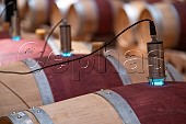 Barriques in chai of Château Montrose. St-Estephe, Gironde, France. [Médoc / Bo...