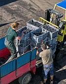 Paulo Veloso (vineyard manager) and Vincent van Rensburg unloading crates of Pin...