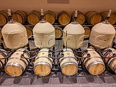 Barriques and amphora in chai of Château Couhins-Lurton. Villenave-d'Ornon, Gir...