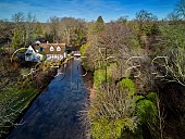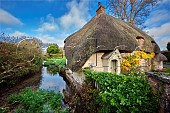 Bridge Cottage by the Pillhill Brook chalk stream at Amport. Near Andover, Hamp...