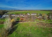 Goodworth Clatford village viewed over the River Anton chalk stream (hidden in t...