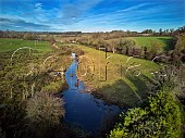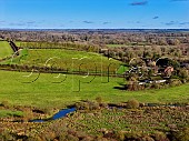 Rivers Vineyard of Black Chalk Wine viewed over the River Anton at Cottonworth. ...