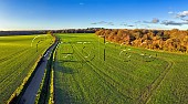The Middleway flanked by fields of winter barley near Longparish. Andover, Hamps...