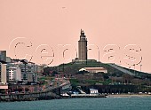 Torre de Hércules Roman lighthouse (1st century AD) at dusk. A Coruña, Galicia, ...
