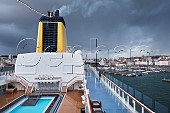 Saga cruise ship 'Spirit of Adventure' leaving port of A Coruña. Galicia, Spain.