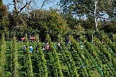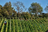Pickers in The Wooldings vineyard of Coates & Seely. Whitchurch, Hampshire, Engl...
