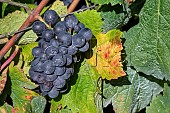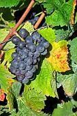 Pinot Noir grapes in The Wooldings vineyard of Coates & Seely. Whitchurch, Hamps...