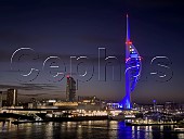 Spinnaker Tower and docks before dawn. Portsmouth, Hampshire, England.