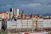 Harbour front buildings (Galerías de la Marina) on Avenida de la Marina, with th...