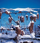 Gewürztraminer grapes picked when frozen for Icewine (temperature -12C). Malivoi...