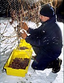 Use of dry ice for cooling grapes during harvest on a hot day. Austria.