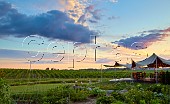 Dawn breaking over Westcott Vineyards. Jordan Station, Ontario, Canada. [Niagara...