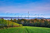 Lightfoot Vineyards above the Gaspereau River. Avonport, Nova Scotia, Canada.