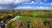 Vineyard of The Wharie Experience in late autumn with the New Forest beyond. Lym...