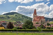 View over the River Danube and the village and church of Unterloiben to the Loib...