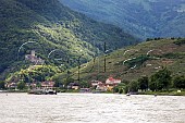 Town of Gobelsburg with Schloss Gobelsburg winery and terraced vineyards. Niede...