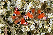 Two Peacock butterflies awoken from hibernation by the Spring sunshine and weigh...