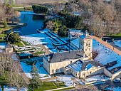 Château Lagrange and its chai after snow. Saint-Julien-Beychevelle, Gironde, Fra...