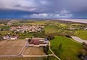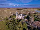 Château Verdignan and its vineyard in winter with the Gironde estuary beyond. St...
