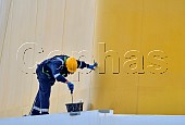 Worker painting the Saga cruise ship 'Spirit of Adventure'.